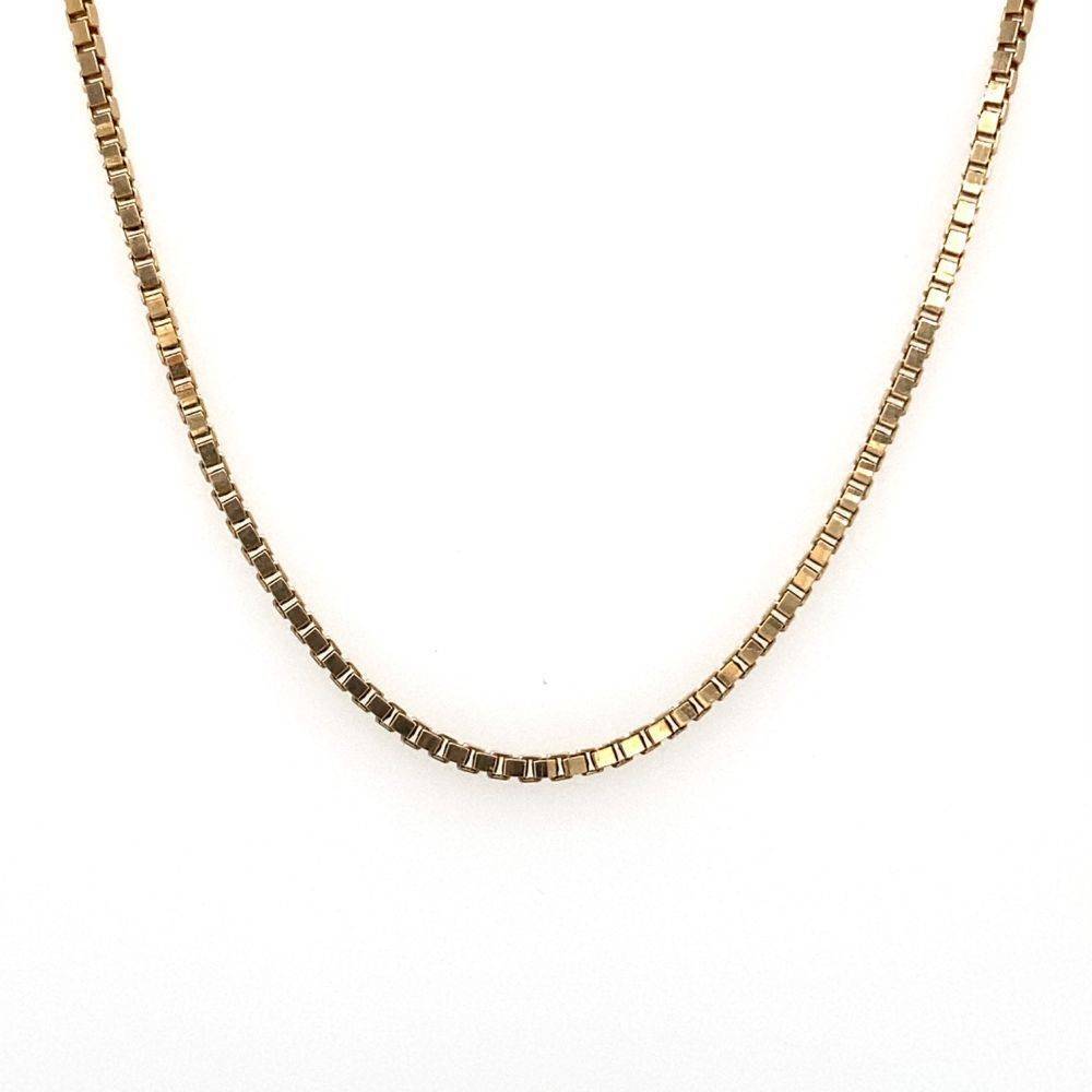Pre Owned 9ct yellow gold box link chain. Length 41cm. Weight 4.8g.