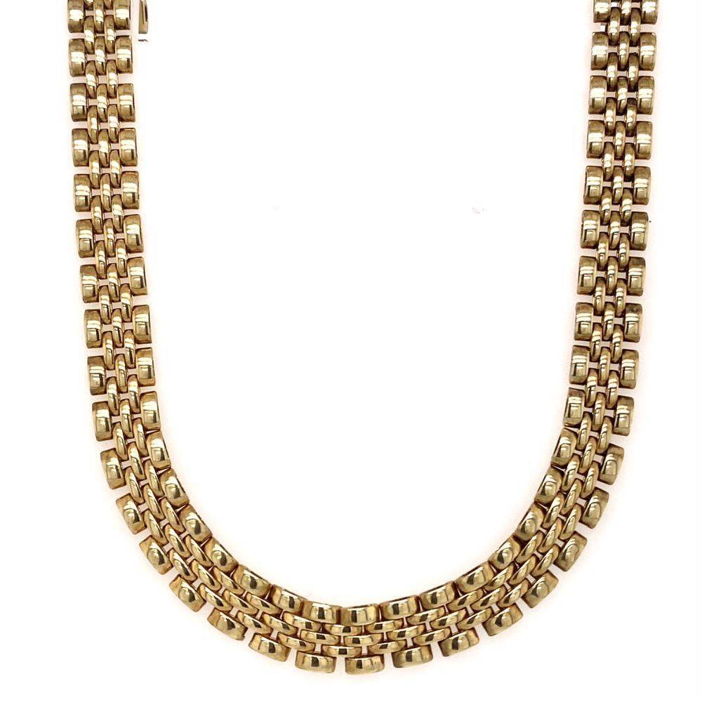 Pre Owned 9ct yellow gold brick link flat necklace. Length 16″”. Weight 22.4g.