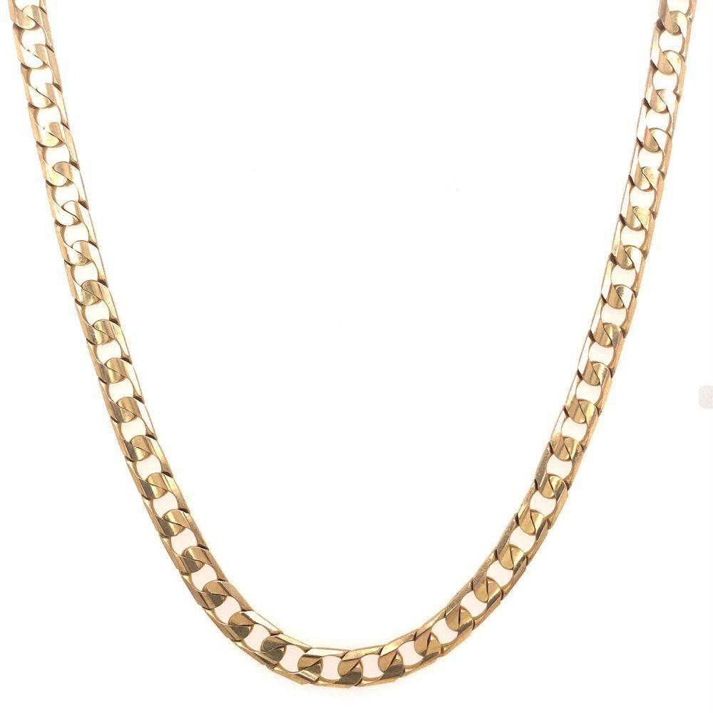 Pre Owned 9ct yellow gold flat curb link chain. Length 46cm. Weight 15.6g.