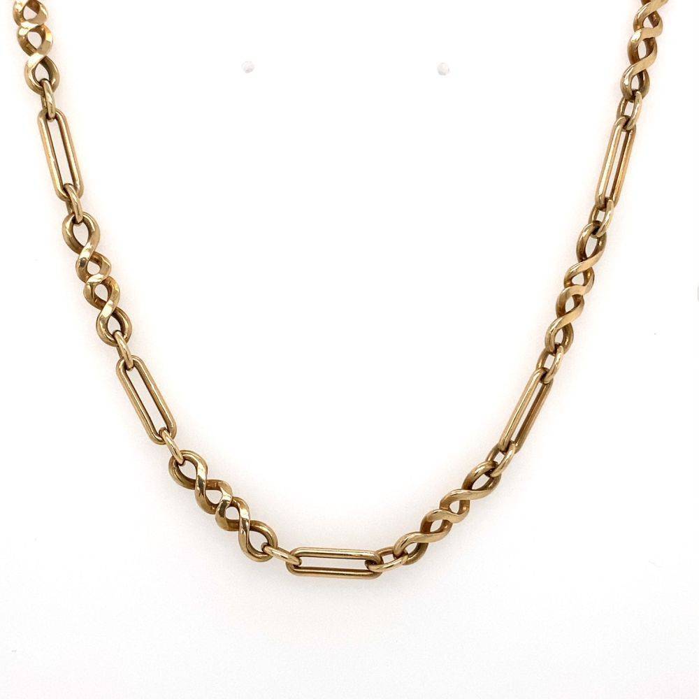 Pre Owned 9ct yellow gold double figure of eight link and rectangle link chain. Length 48cm. Weight 17g.