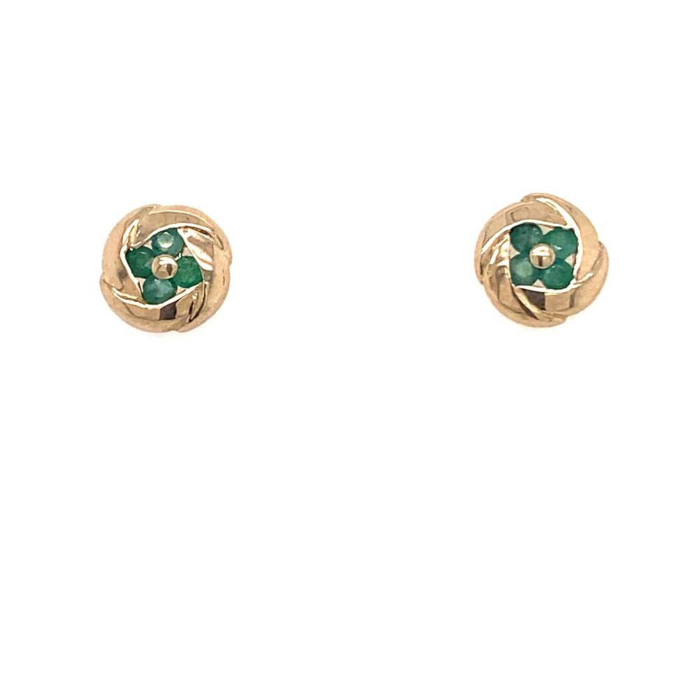 Pre owned 9ct yellow gold round stud earrings each set with four round emeralds.