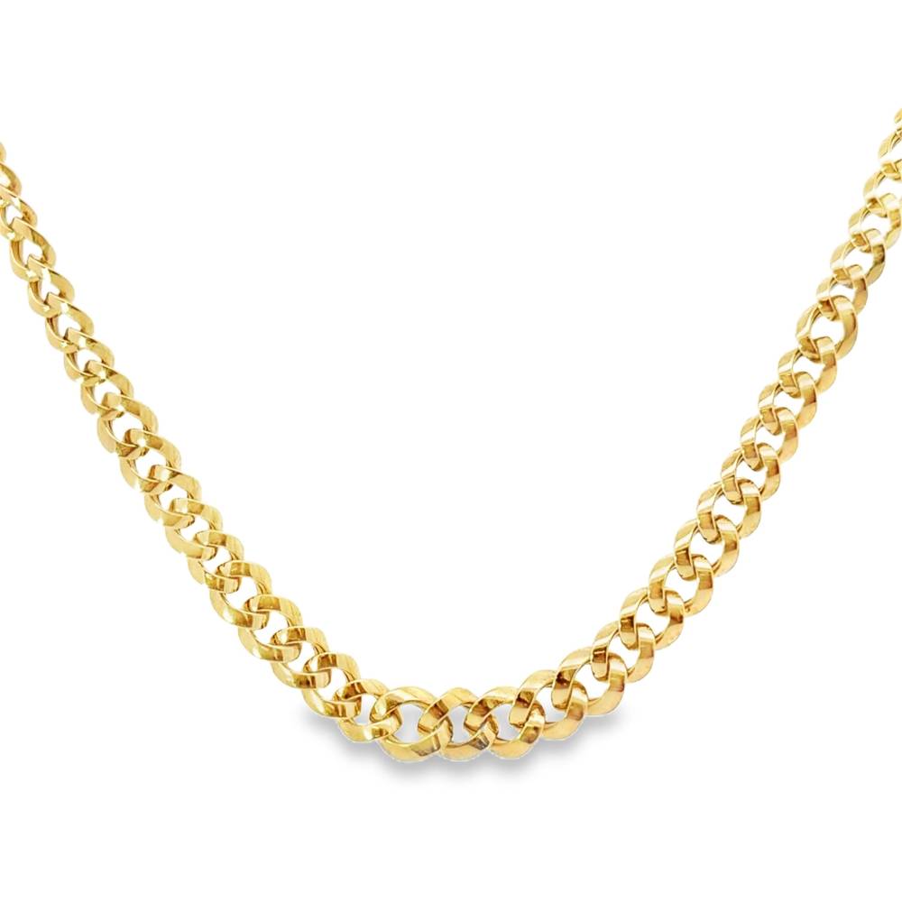 Pre owned 9ct yellow gold graduated curb chain. 45cm length. Total weight 11.28g.