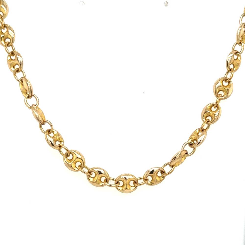 Pre owned 9ct yellow gold marine link chain. Length 51cm.