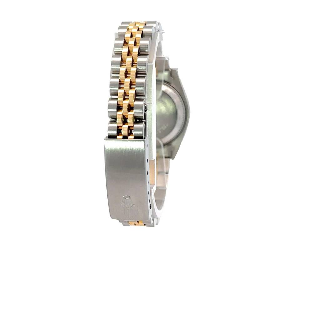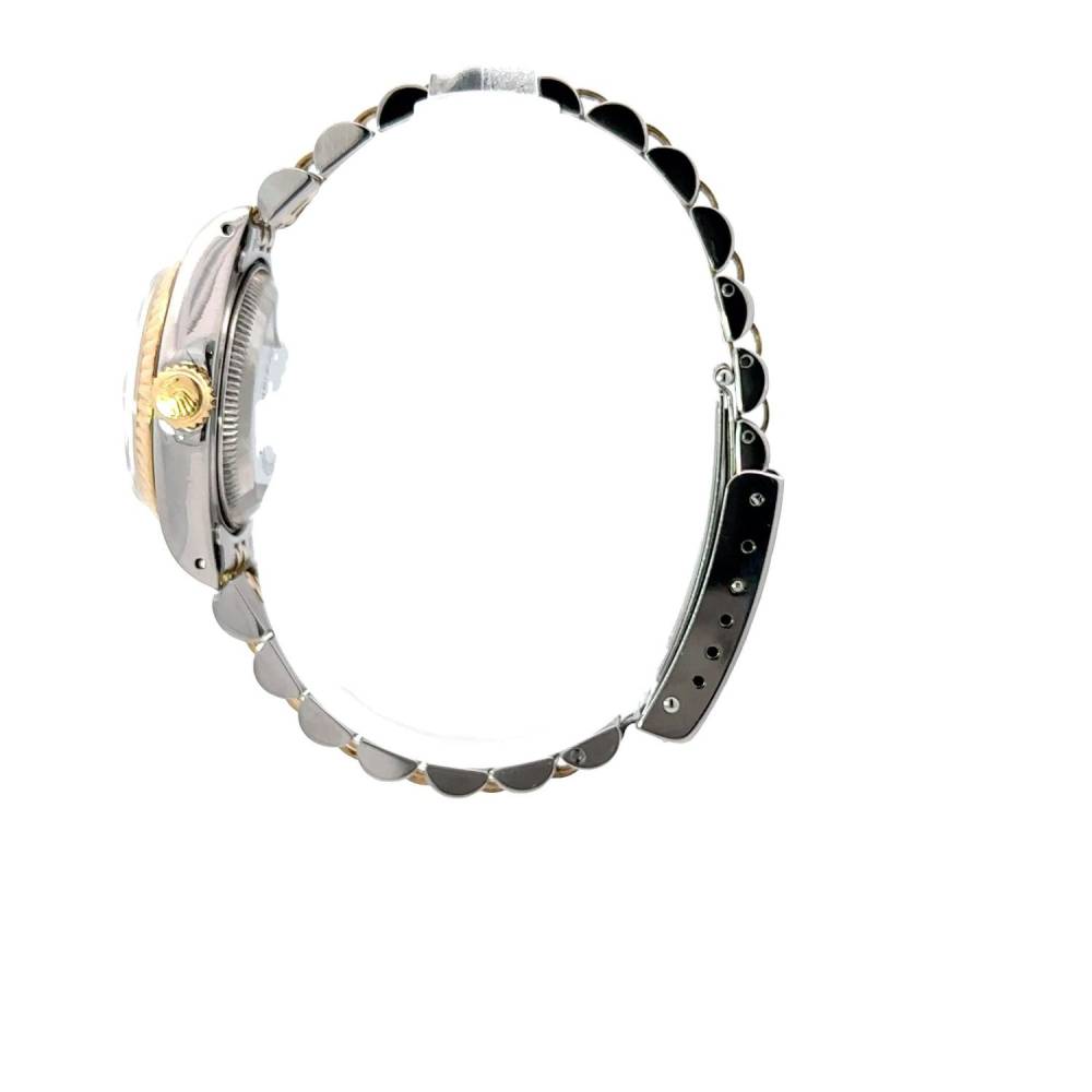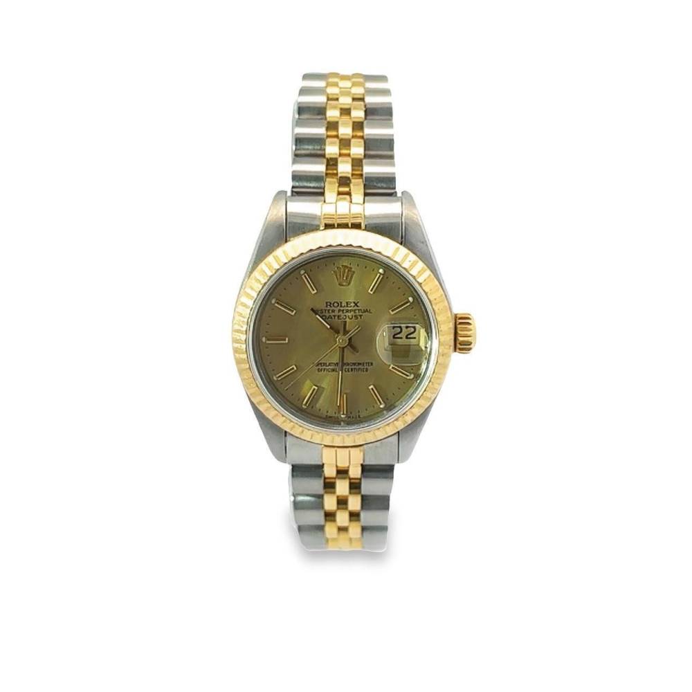 Pre owned ladies stainless steel and 18ct gold Rolex Datejust watch with a round champagne baton dial. Steel and gold jubilee bracelet. This watch comes with a box but not the original papers This watch has been fully refurbished and comes with our one year warranty.
