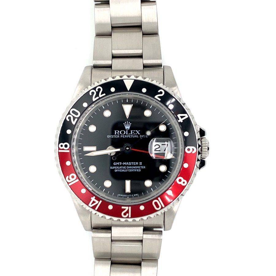 Pre Owned Rolex GMT Master 2 Watch (Year 1994). This watch has a black dial with a date window, a black and red bezel and is on a steel oyster bracelet. The watch is powered by an automatic movement. Model 16710. This watch has been fully refurbished and comes with a one year warranty. Box no papers.