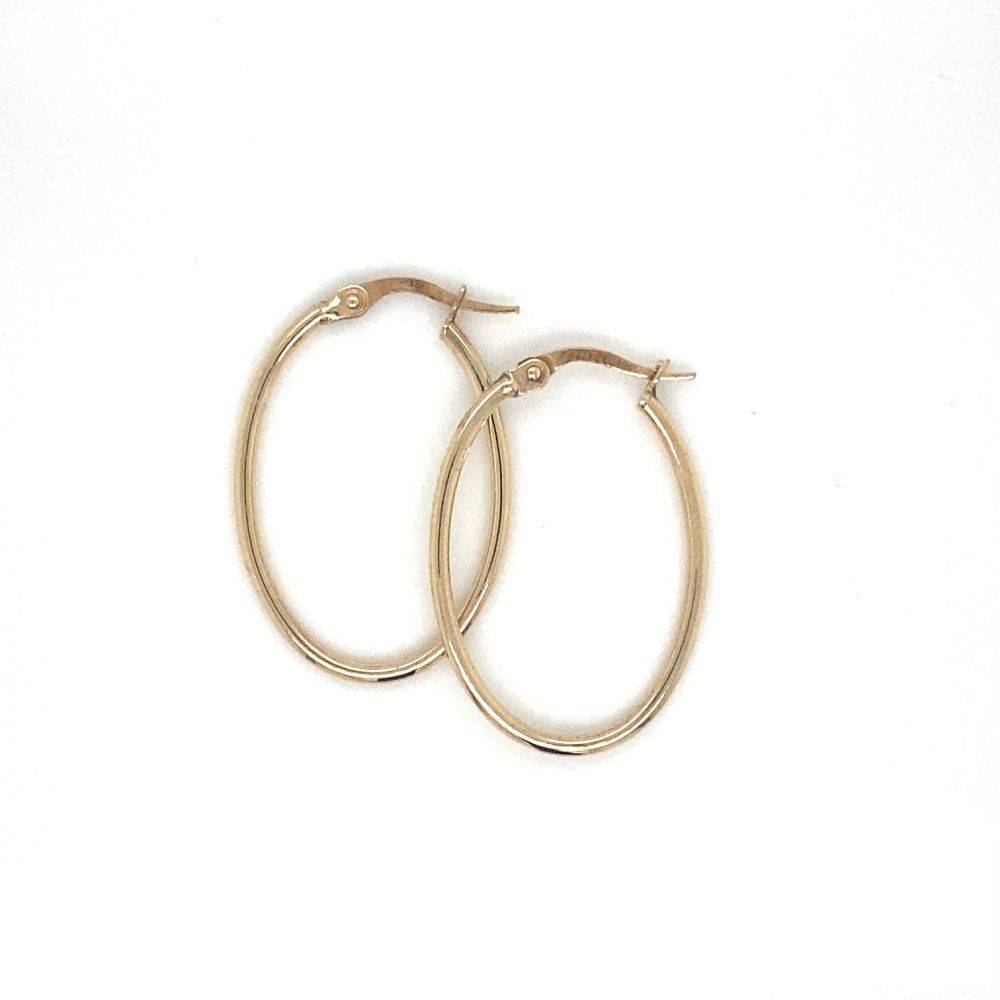Preowned 9ct yellow gold oval hoop earrings. 30mm x 20mm. Weight 0.8g.