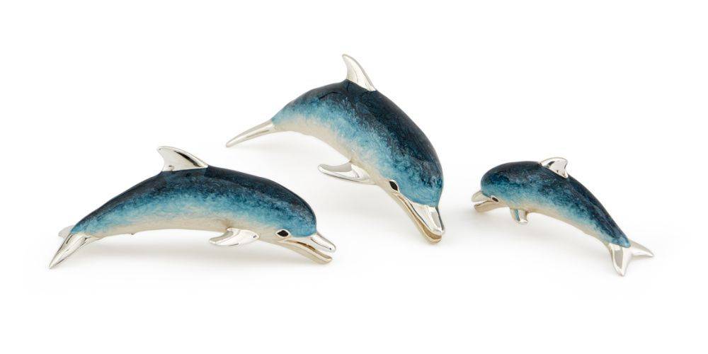 Saturno sterling silver and enamel medium dolphin. This Dolphin is the one on the far left of the photo. This figurine has been beautifully made in sterling silver and hand enamelled. Then the animals are lacqured to help prevent tarnishing. Height 22mm.