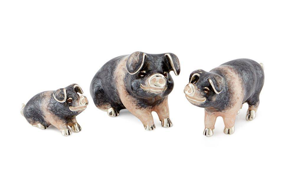 Sterling silver and enamel medium Saddleback pig figurine. This is for the medium pig on the right it is 25mm high. This figurine has been beautifully made in sterling silver and hand enamelled. Then the animals are lacqured to help prevent tarnishing.