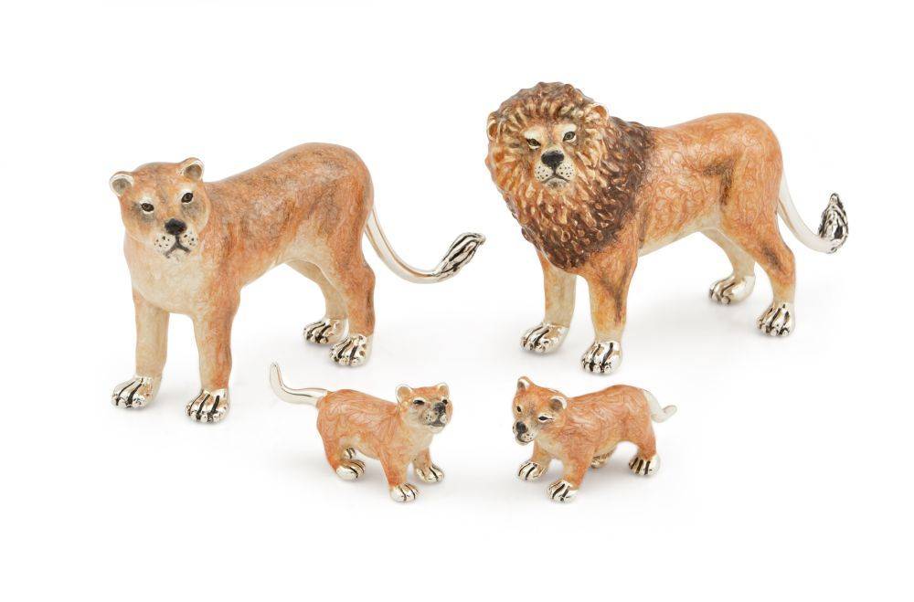 Saturno sterling silver and enamel small Lion cub, this Lion cub is the one at the front left hand side of the image. The Lion cub is 20mm high. This figurine has been beautifully made in sterling silver and hand enamelled. Then the animals are lacqured to help prevent tarnishing.