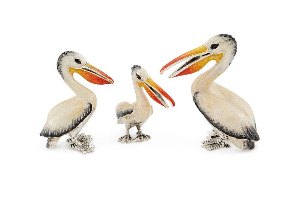 Saturno sterling silver and enamel small Pelican. This is the pelican in the middle of the image. Width 13mm, Height 32mm. This figurine has been beautifully made in sterling silver and hand enamelled. Then the animals are lacqured to help prevent tarnishing.