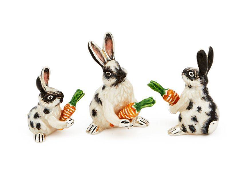 Sterling silver and enamel small rabbit and carrot figurine. This is for the rabbit on the left it is 32mm high. This figurine has been beautifully made in sterling silver and hand enamelled. Then the animals are lacqured to help prevent tarnishing.