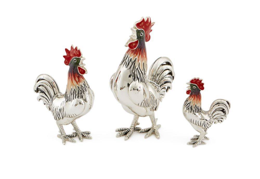 Sterling silver and enamel small rooster figurine. This is for the small rooster on the right. This figurine has been beautifully made in sterling silver and hand enamelled. Then the animals are lacqured to help prevent tarnishing.