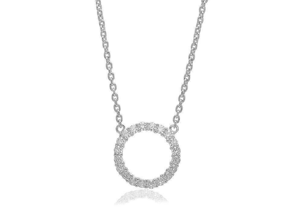 Necklace made of 925 sterling silver with rhodium, polished surface and facet cut white zirconia and 45cm chain. Pendant measurements: Diameter 13 mm, Chain length 42 cm + 3 cm.