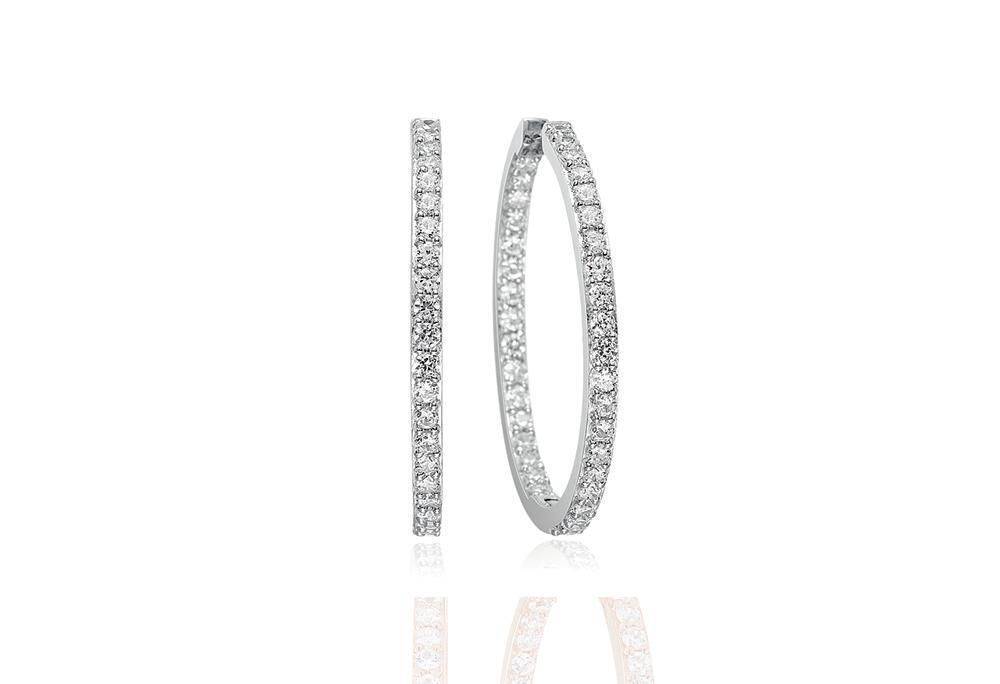 Sif Jakobs sterling silver fine hoop earrings set with sparkling cubic zirconia. Diameter 33mm.