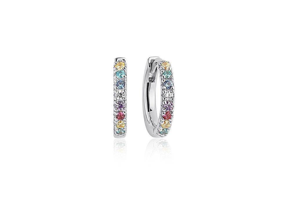 Sif Jakobs sterling silver Ellera hoop earrings set with sparkling multi coloured cubic zirconia. Height 14mm.