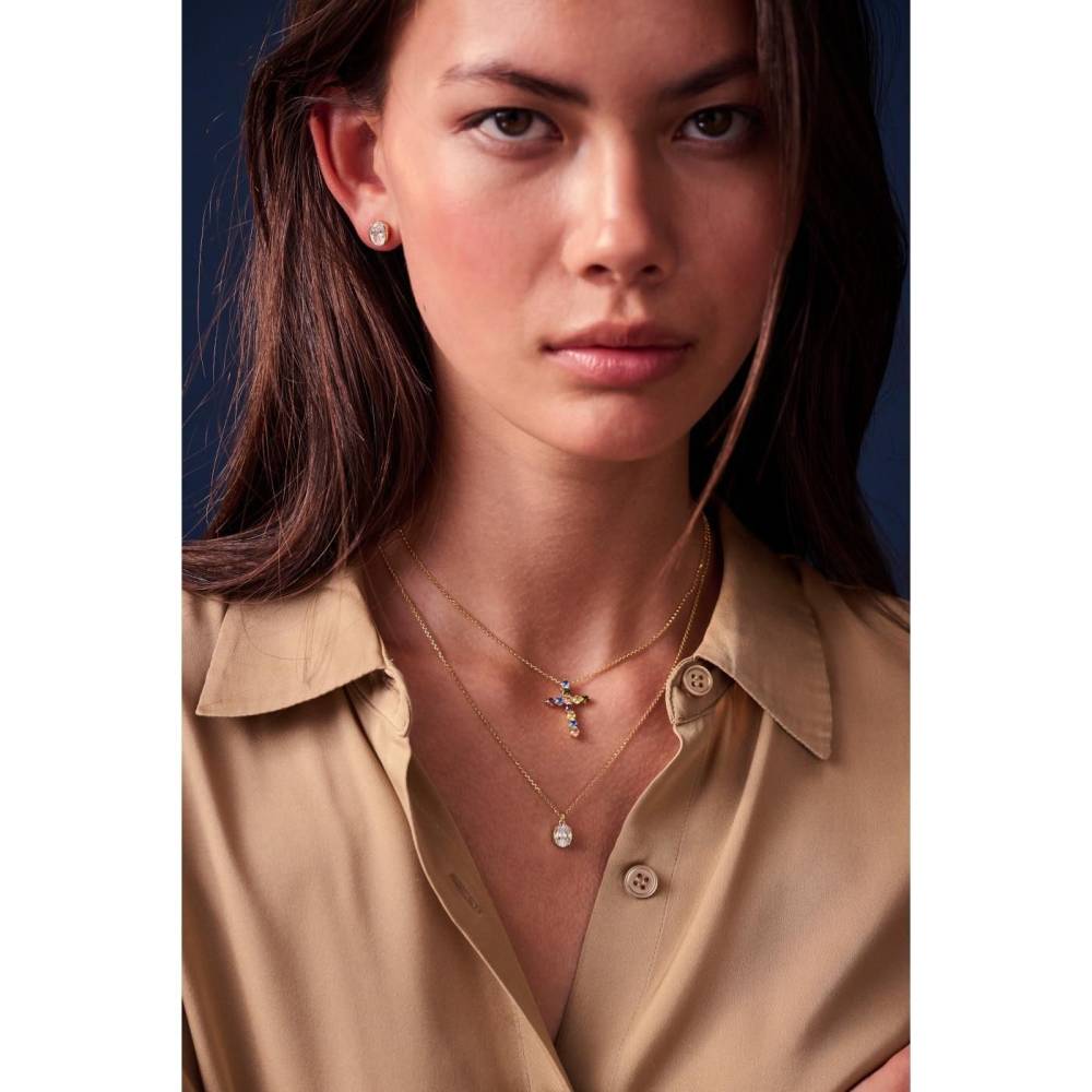 Gold plated silver Cubic Zirconia earrings. This piece of jewellery is suitable for every occasion, whether that’s casual during the day or chic in the evening.