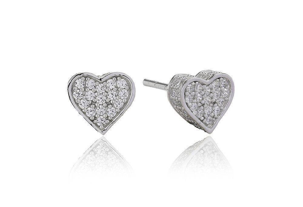 Sif Jakobs sterling silver Amore pave set cubic zirconia heart stud earrings.