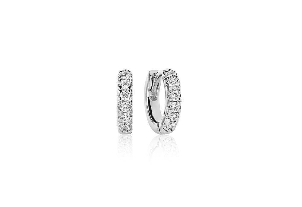 Sif Jakobs sterling silver Ellera Piccolo tiny huggie style hoop earrings set with sparkling cubic zirconia. Height 11mm.