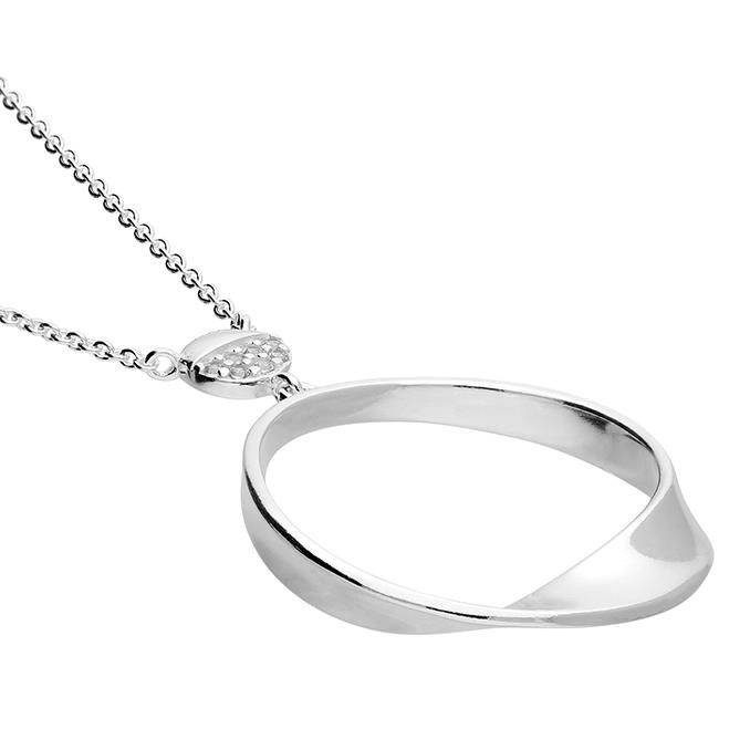 Fixed disc with cubic zirconia and twisted silver circle pendant