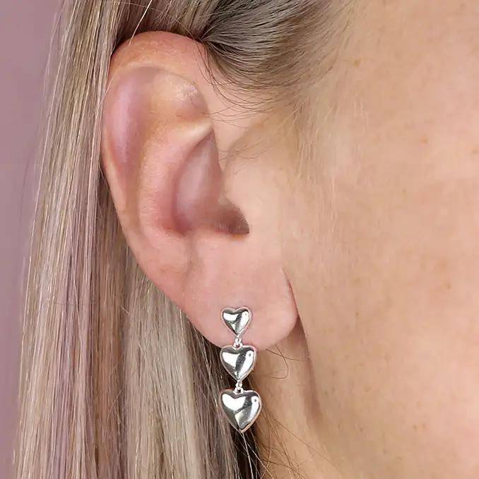 Sterling silver triple heart graduated drop earrings. 23mm drop.