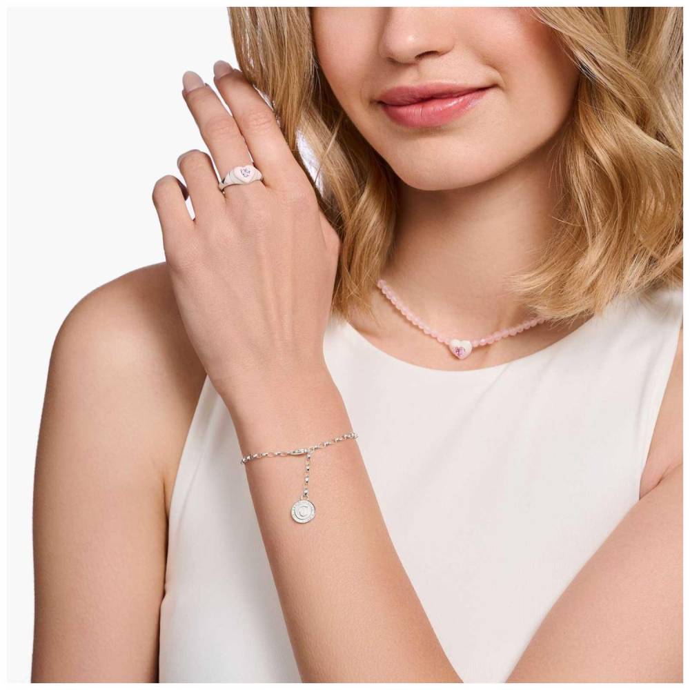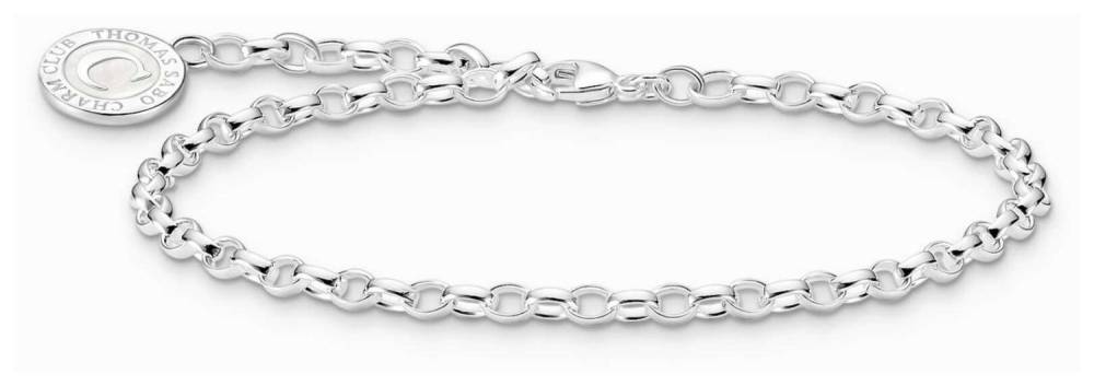 Made from sterling silver the chain of the bracelet is comprised of wide anchor-style links to ensure that charms can be added easily. A Charmista Coin pendant hangs from the end of the chain. It is detailed with white enamel.