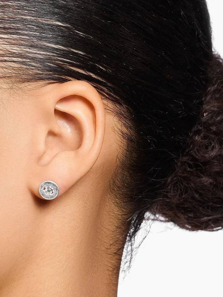 Round stud earrings in 925 sterling silver with a facet-cut zirconia stone in the centre that reflects the light. With THOMAS SABO engraving – this is jewellery with timeless character.