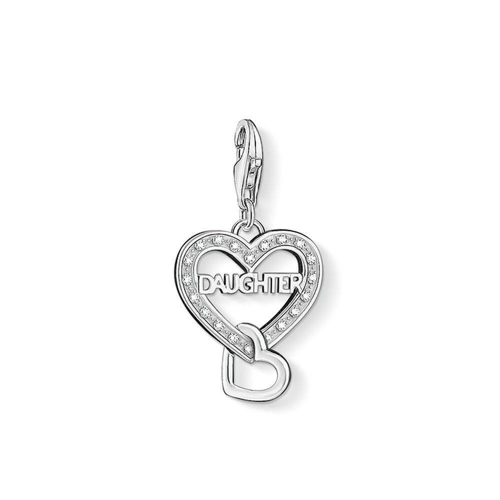 Thomas Sabo silver with cubic zirconia heart shaped ‘Daughter’ charm. Nothing could be greater than the love a mother feels for her child – with the dazzling ‘Daughter’ Charm crafted from 925 Sterling silver, mothers can now show this love for their offspring.