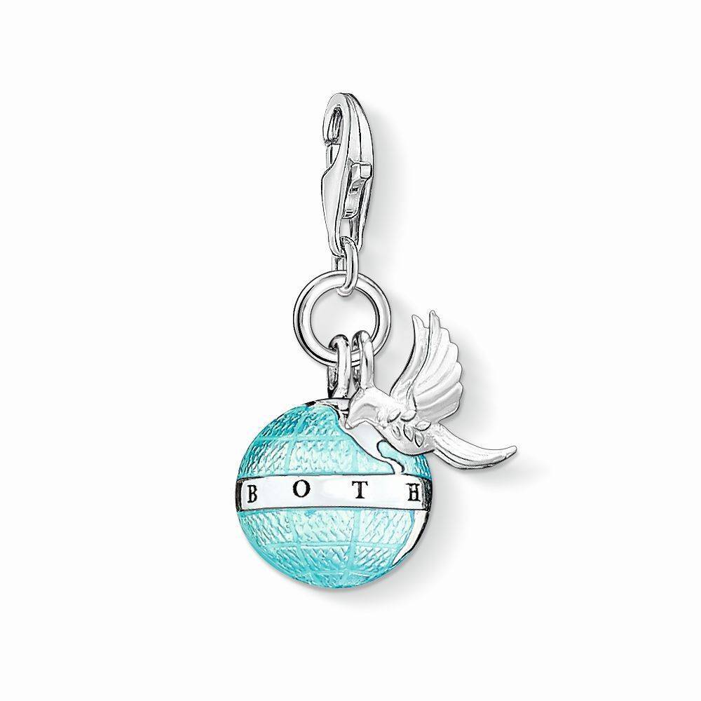 Thomas Sabo globe charm in sterling silver and enamel with a smaller little bird charm.