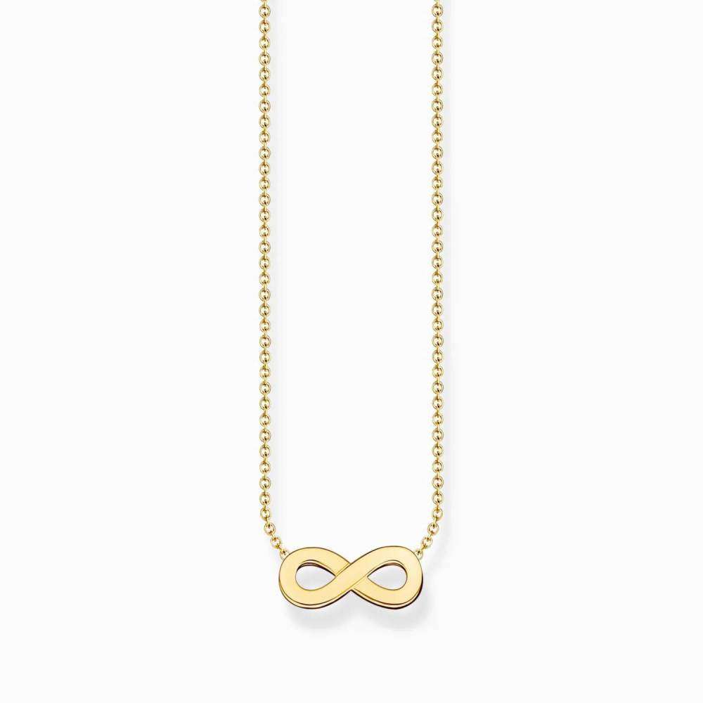 Necklace with infinity pendant This delicate necklace expresses your feelings in the most beautiful way. The delicate infinity symbol stands for infinity – whether love or friendship, this piece of jewellery is the perfect gift for your favourite person. – Made from recycled 925 silver with 18k gold plating – Individually adjustable in length from 38 to 45 cm