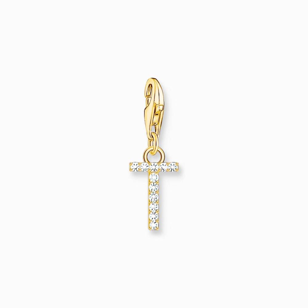 Thomas Sabo 18ct yellow gold plated on sterling silver initial T charm set with sparkling cubic zirconia.