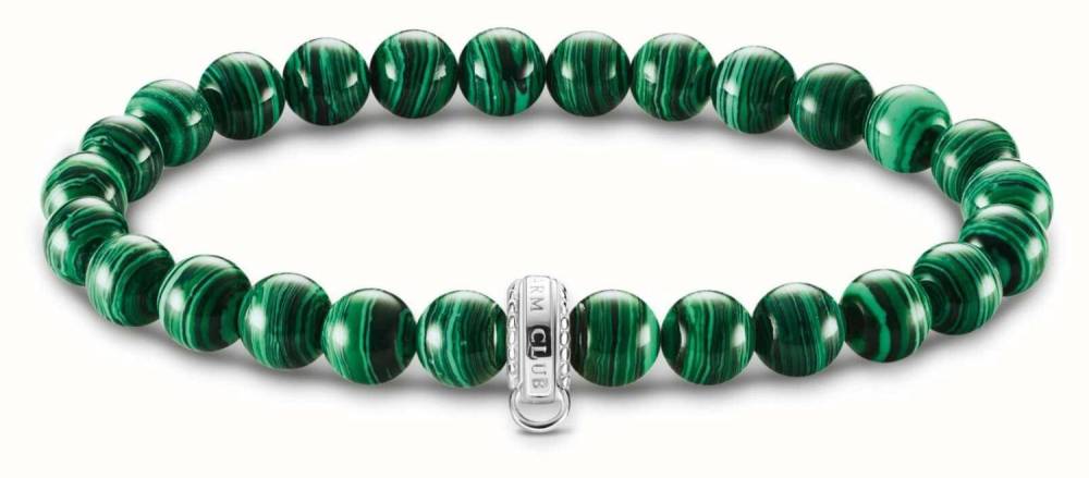 The Thomas Sabo green beaded charm bracelet measures 19cm and is made from sterling silver and has green beads.