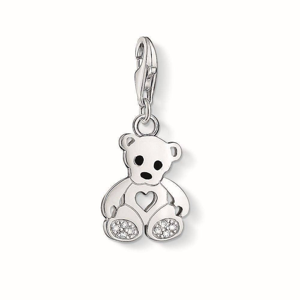 Thomas Sabo silver Teddy bear charm with black enamel facial features and pave set cubic zirconia.
