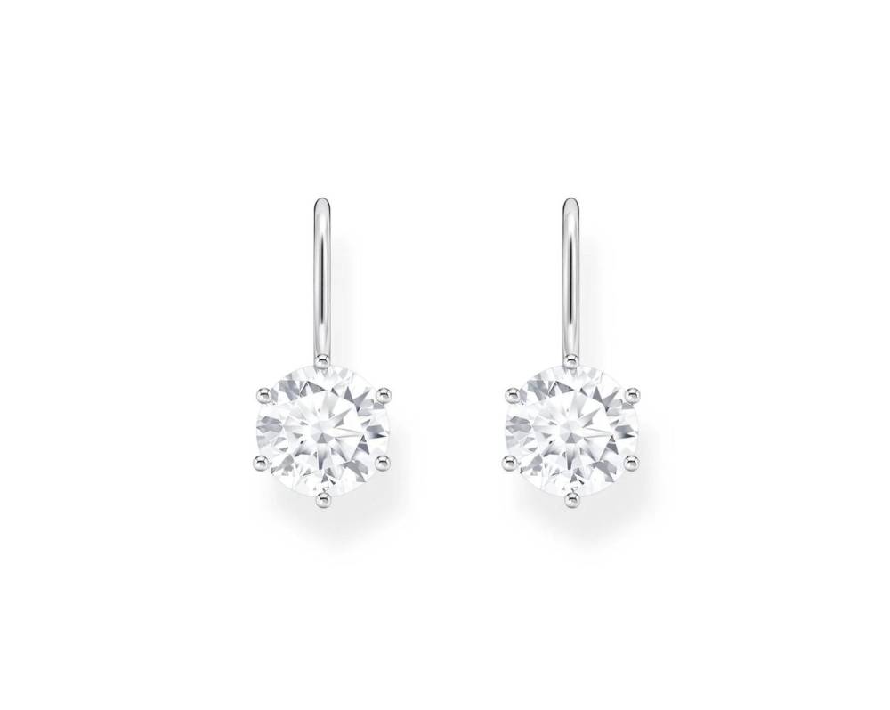 Earrings with large zirconia stone Simple elegance: Whether worn with a business look, in your free time or with an elegant evening outfit – these dangle earrings with a large white round-cut zirconia stone enhance any outfit. – Made from recycled 925 silver – Comfortable to wear thanks to ear hooks