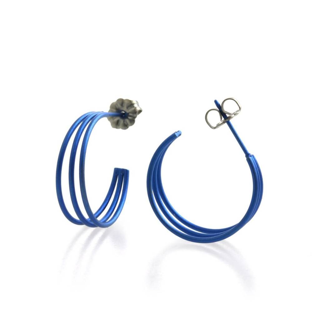 These titanium hoop earrings are 20mm in diameter. Three strands of fine titanium have been joined to create these delicate but bold earrings. Hypoallergenic, they do not irritate your skin.