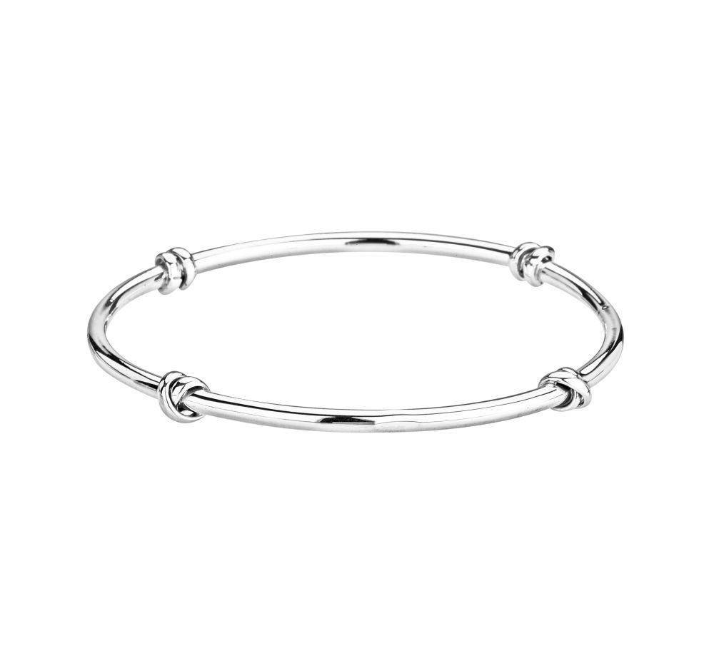 Tianguis Jackson sterling silver full bangle with four fixed knot designs equally spaced.