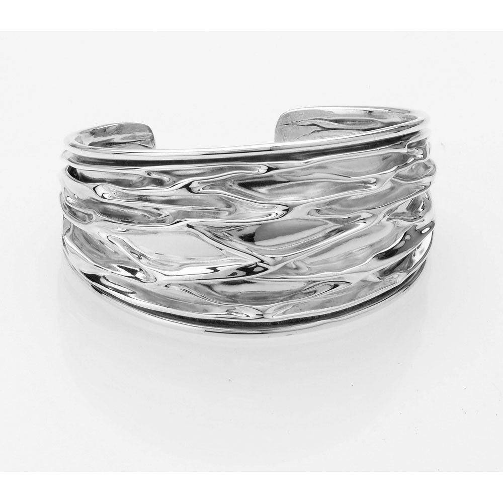 Tianguis Jackson sterling silver wide wrinkled cuff style bangle.