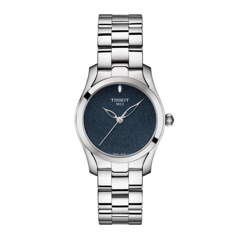 This Tissot ladies T-Wave watch is crafted from stainless steel and features a striking sparkle black dial finished on a polished stainless steel bracelet. The Tissot T-Wave is a piece of jewellery that can be worn at any occasion, adding a touch of sophistication to a daily outfit or complimenting a cocktail dress for a special occasion. Case 30mm.
