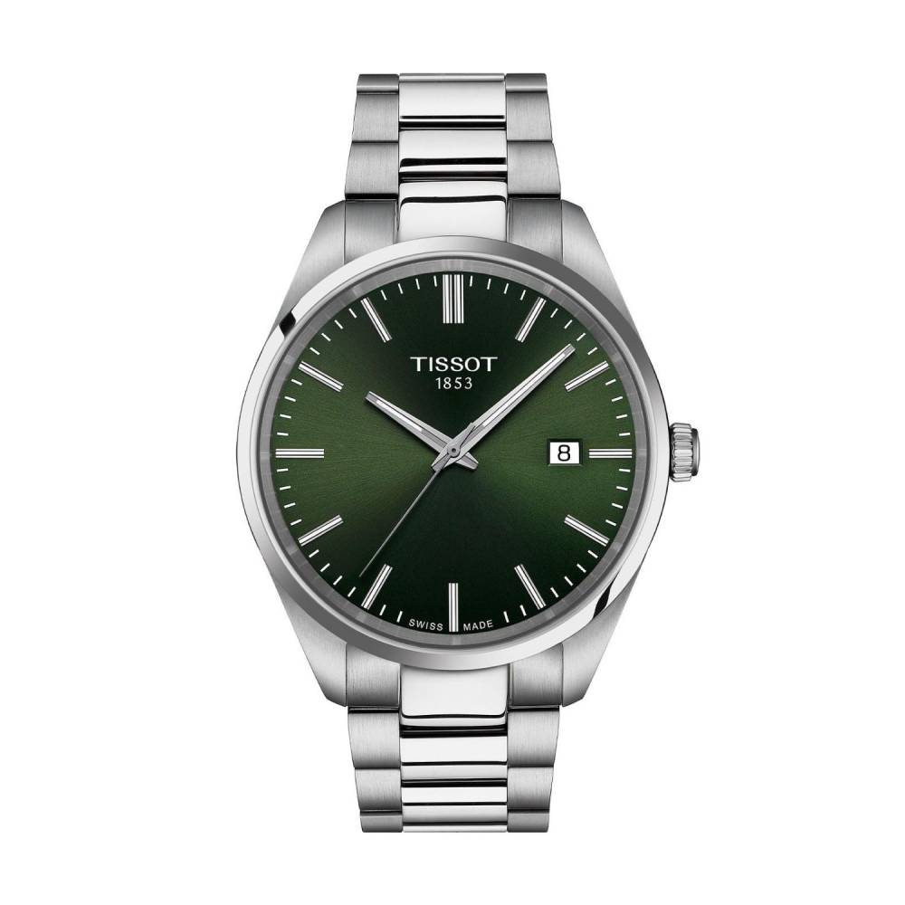 The Tissot PR100 is a classic watch destined to be worn often and for every occasion. Features the simple and elegant face the collection is loved for, with the pared-back aesthetic symbolising luxury, quality and classic style. Introducing the Tissot PR100 Men’s Watch both ergonomic and elegant in any circumstance. Protected by anti-reflective, scratch-resistant sapphire crystal glass and set within a reliable and secure 40mm stainless steel case, featuring a green dial detailed with silver hour markers and a date aperture at 3 o’clock. Coordinated with a stainless steel bracelet, fastened by an elegant, Tissot engraved butterfly steel clasp with push buttons for an impeccable fit. Powered by a quartz movement and water resistant up to 100 metres