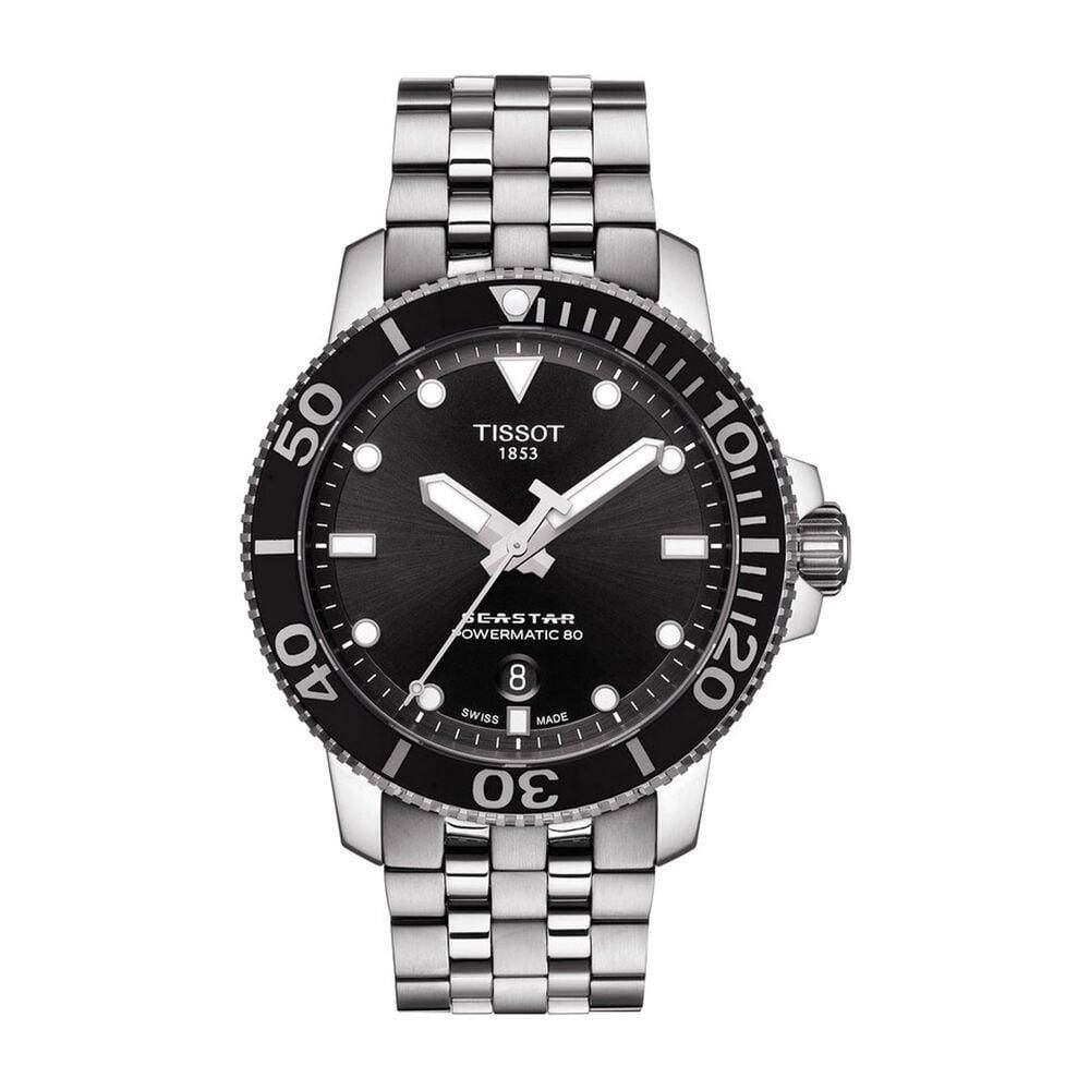 By combining slick silver-tone steel and classic black design details, this sleek Tissot Seastar watch exudes a classically captivating aura. It is made with contemporary craftmanship however; with a robust 43mm sizing and a Swiss-made Powermatic 80 calibre automatic movement. Like the name suggests, it is poised and primed for underwater pursuits as it boasts a 300m water resistance. Note the polished links of the bracelet which work to add a flash of finesse to the wrist – no matter when and where this wonderful watch is worn.Comes with a 2 Year Tissot Warranty.