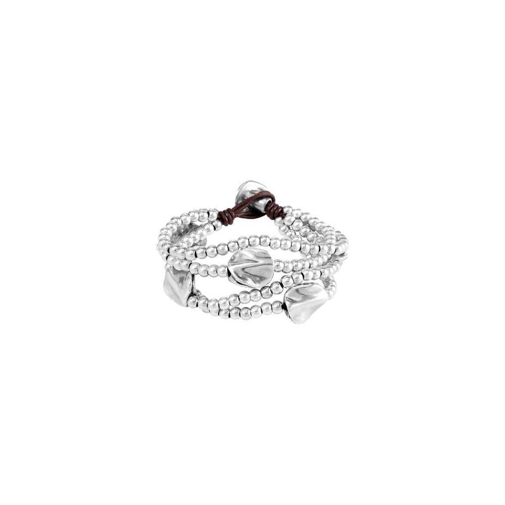 Uno de 50 silver plated A Beautiful Mind bracelet, silver plated beads and leaves decorate the leather strands. Size Medium. 100% handcrafted and made in Spain.