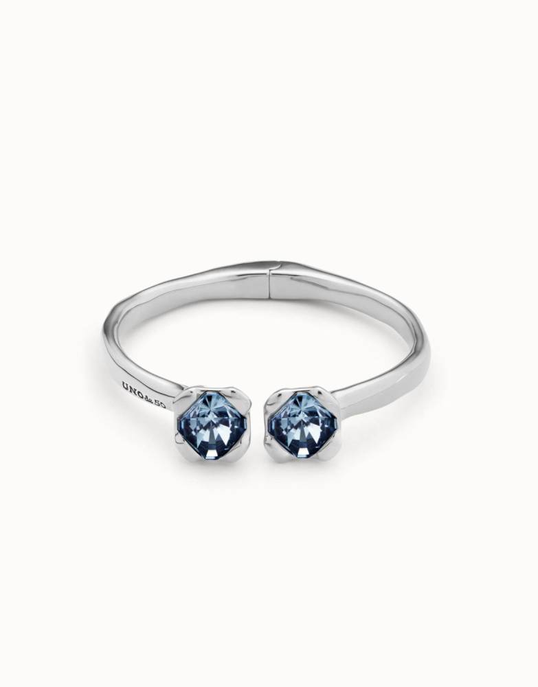 Uno de 50 silver plated torque style hinged bangle with two feature blue crystals. A true fusion of art and jewel in a single piece that makes you dream. This bracelet has been handmade in Spain. Szie large 16.5-17.5cm