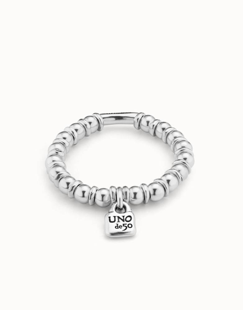 Uno de 50 silver plated elasticated bead bracelet with a feature Uno de 50 padlock charm. The Uno de 50 collection is all handmade in Spain. Size medium 15-16cm.