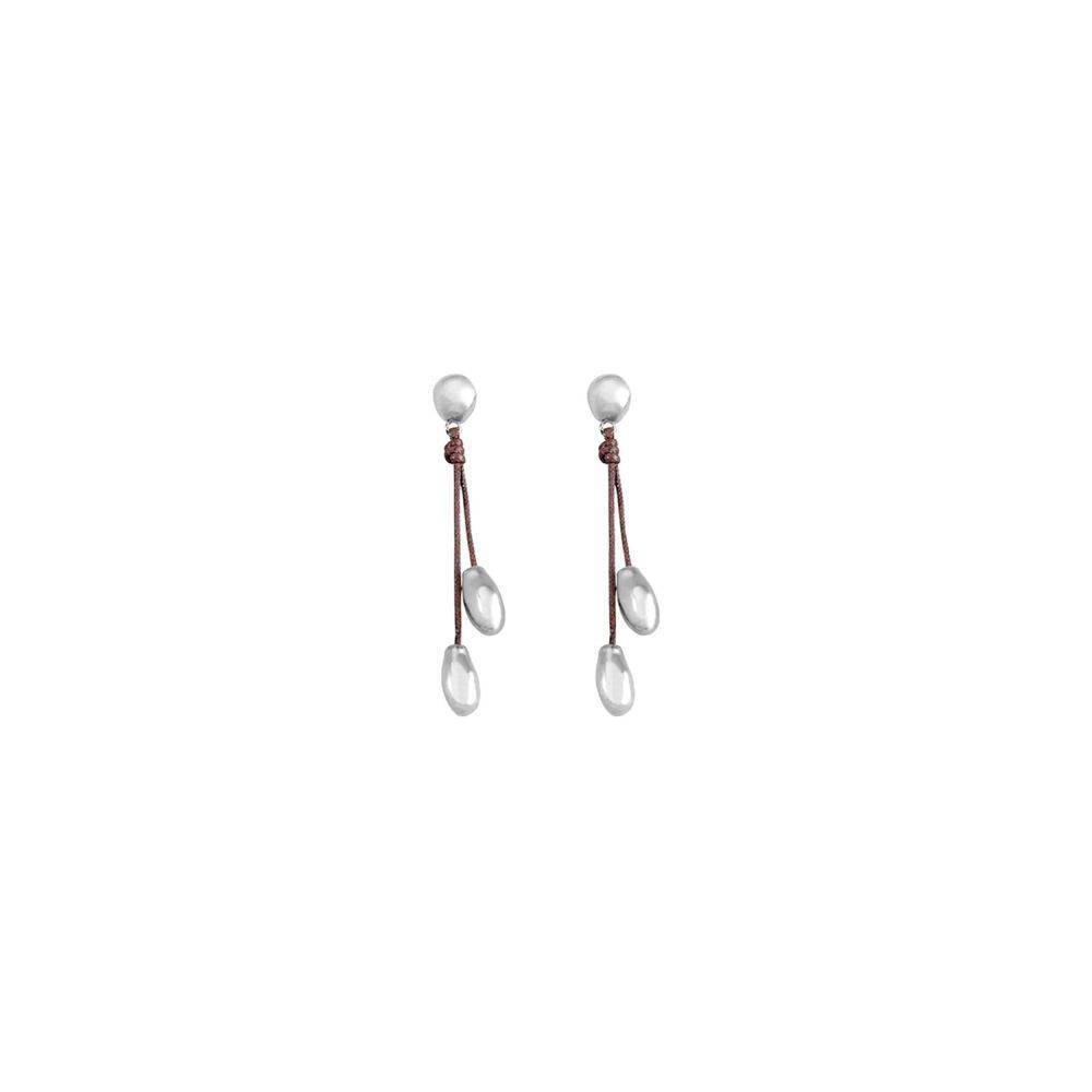 Uno de 50 silver plated and brown leather raindrop drop earrings. 100% handcrafted and made in Spain.