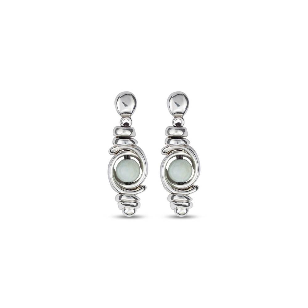 Uno de 50 silver plated planets drop earrngs with a amazonite in the centre surrounded by a silver orbit. Handcrafted in Spain.