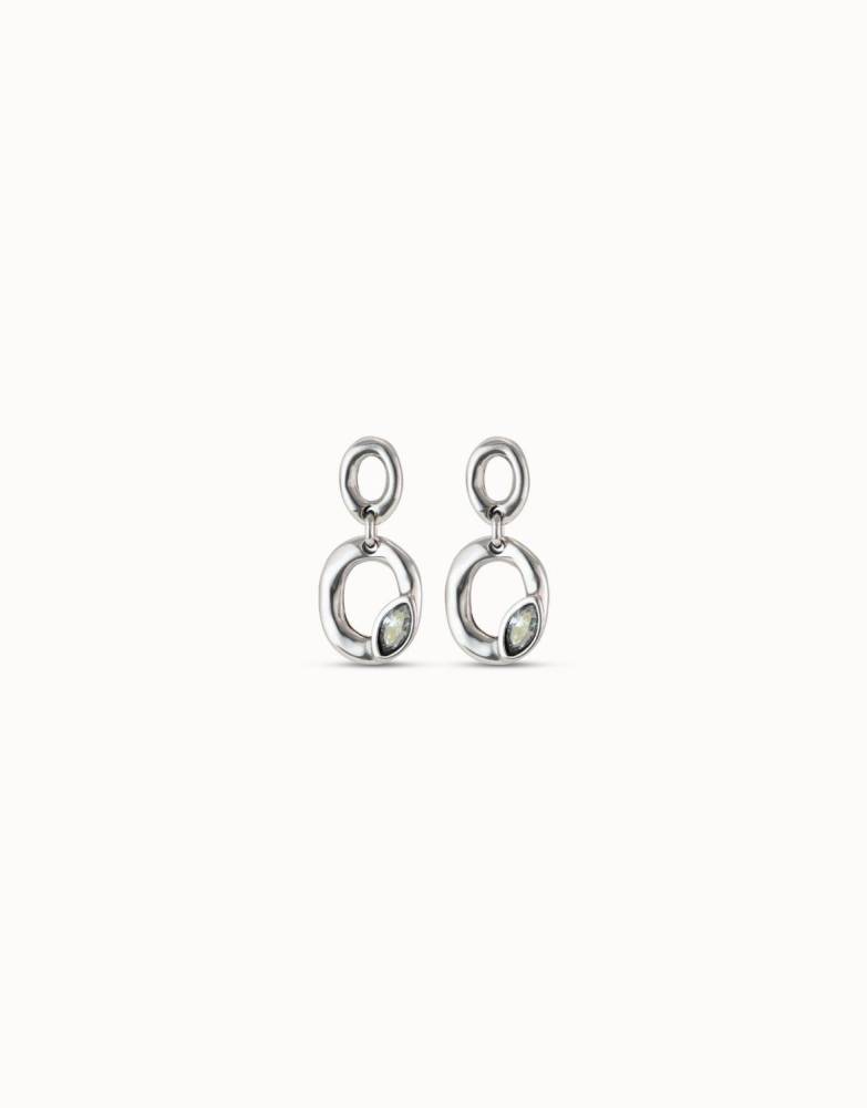 Cascade-shaped earrings with double oval, each of different size. In the lower oval there is a small faceted silver-gray crystal. This original creation has been completely handmade in Spain through a meticulous process. The Grateful collection symbolizes a subtle and sophisticated feeling. Focus on the good things in life and feel grateful for what you have. A feeling transferred to metal and crystal, in organic jewelry full of life.