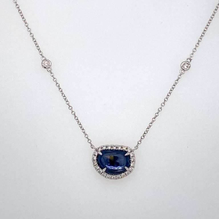 18ct White Gold Oval Rose Cut Sapphire & Diamond Necklace