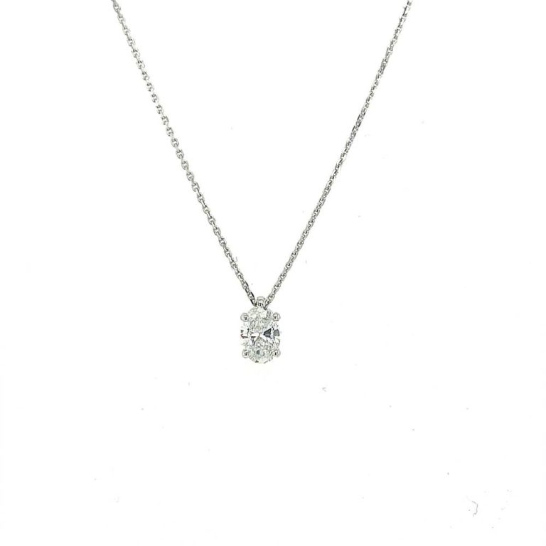 18ct White Gold Oval Diamond Pendant