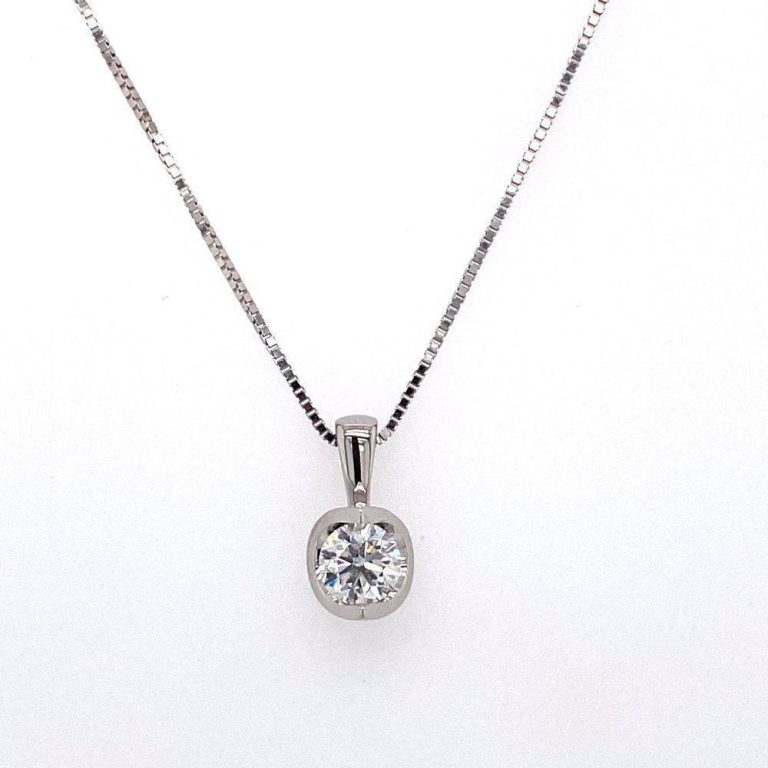 18ct White Gold Solitaire Diamond Pendant 0.52ct