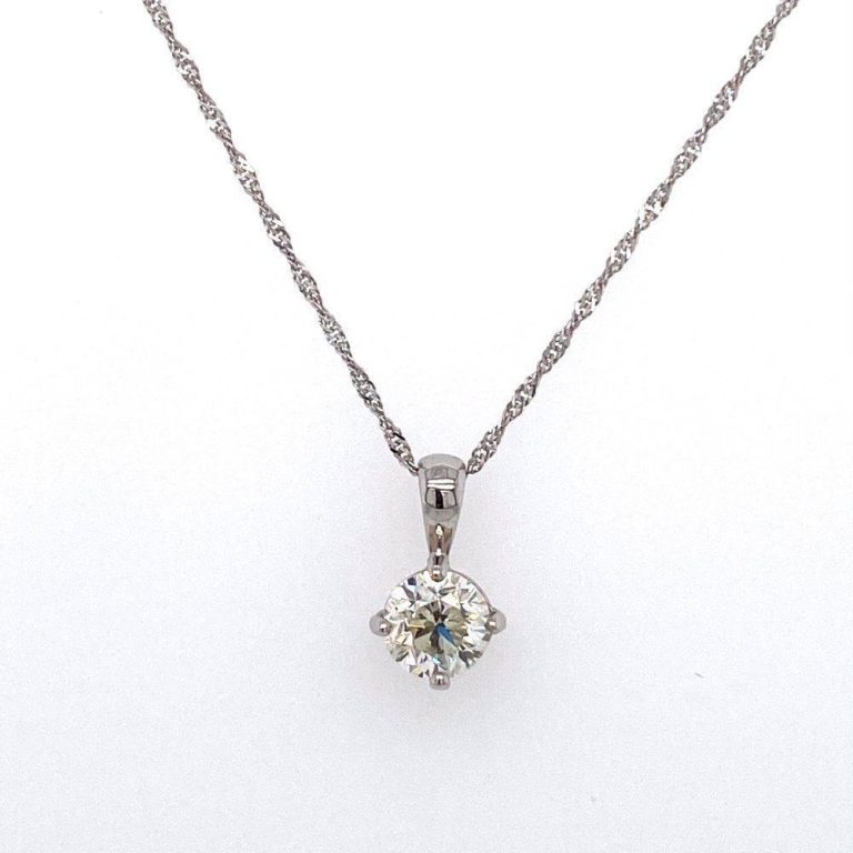18ct White Gold Solitaire Round Brilliant Cut Diamond Pendant