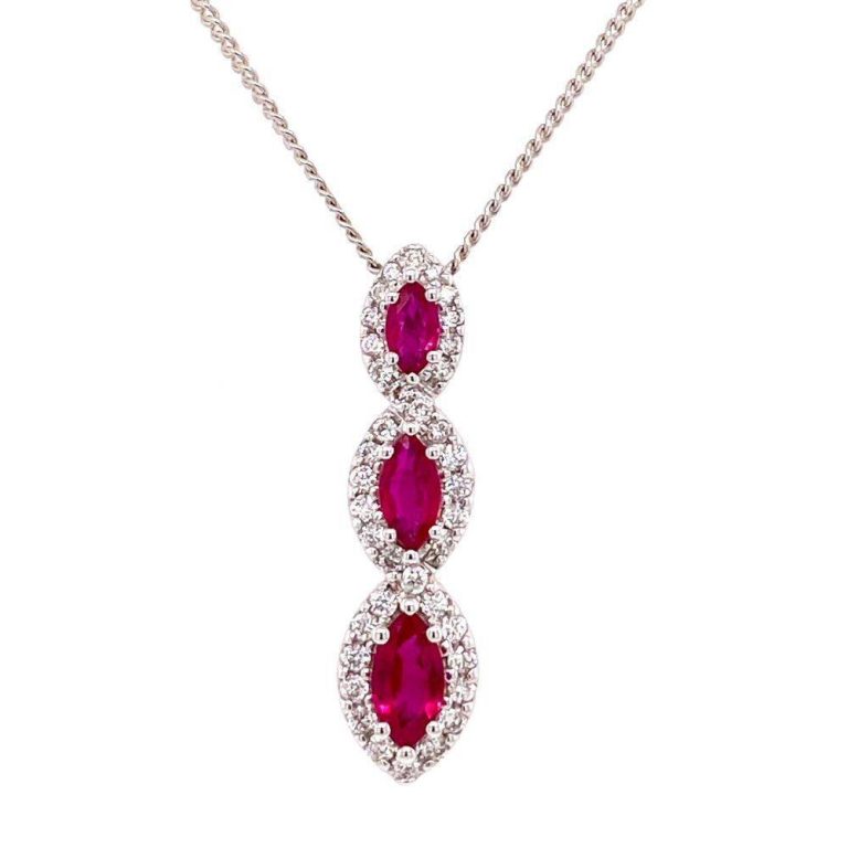 18ct White Gold Three Pear Shaped Ruby & Diamond Cluster Pendant